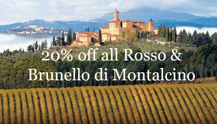Ferruccio Biondi-Santi was a soldier in Garibaldi’s army and upon returning home he took over management of the Fattoria del Greppo estate from his grandfather, Clemente. Ferruccio aged his pure Sangiovese wines in wooden barrels for up to a decade. Brunello gained a great reputation by the end of World War II and by the 1960’s almost a dozen producers were making the wine. In 1980 it gained DOCG status and today over 200 wineries are producing this incredible wine, a window into the soul and spirit of Toscana! Save 20% through November 9th, 2025 on all wines from Montalcino!