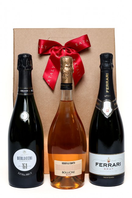 The perfect effervescent Wine gift box celebratory companion, whether ringing in a new year or simply the dawning of a Sunday with a splash of fresh orange juice. This box present three delicious examples, Prosecco Rosato and the two icons stunning Metodo Classico from Italy Franciacorta and Trento DOC.